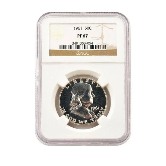 1961 PF67 NGC Benjamin Franklin 90% Silver Half Dollar