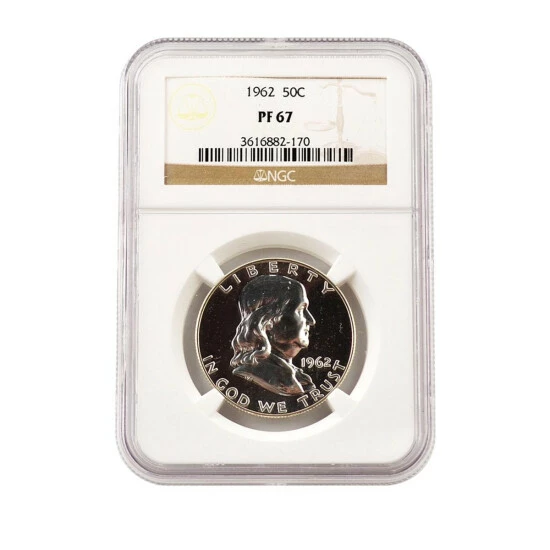 1962 PF67 NGC Benjamin Franklin 90% Silver Half Dollar