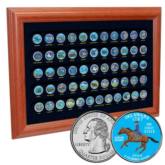 1999-2009 Colorized State/TerritoryQuarters Set of 56 in Wooden Frame
