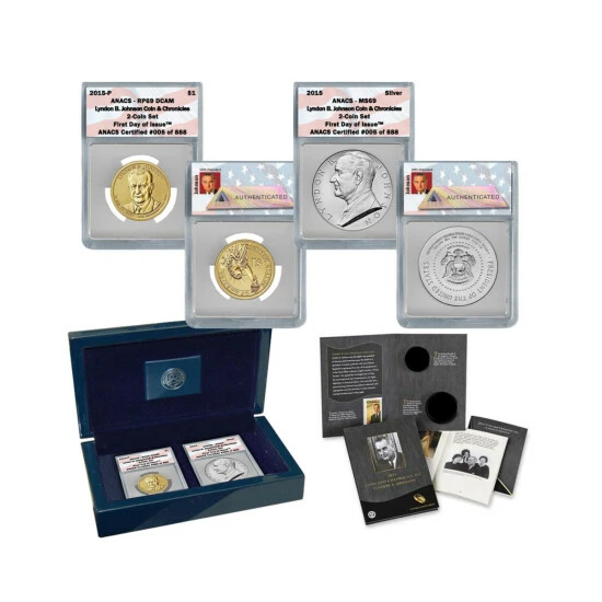 2015 ANACS 69 First Day of Issue Limited Edition of 888 Lyndon B. Johnson Coin and Chronicles Set with U.S. Mint Box