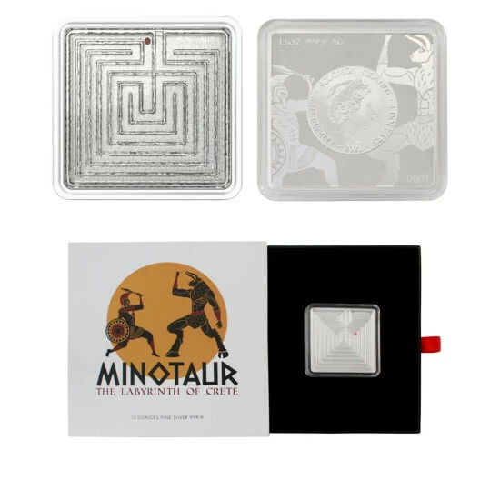 - Minotaur labyrinth of Crete square interactive silver $4 Solomon Islands coin – Limited Edition of 2,000