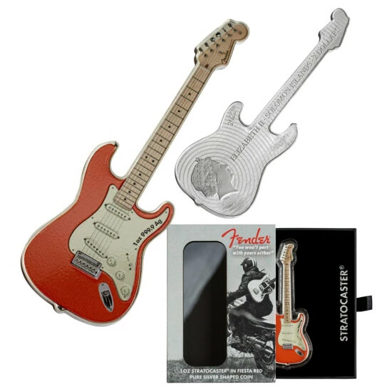 - This 1oz pure silver guitar shaped coin captures this vibrant retro color perfectly, a nod to the Stratocaster guitar originals