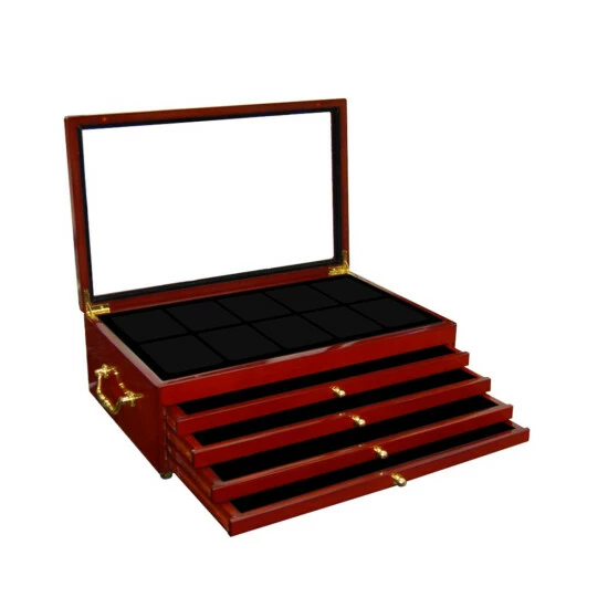 4-Drawer 50 Slabbed-Coin Wooden Display Box with Handles