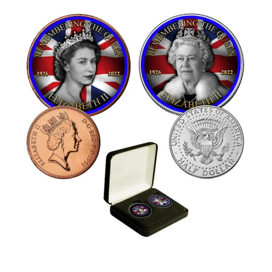 Remembering Queen Elizabeth Colorized JFK Half & 2 Pence2-Coin Set