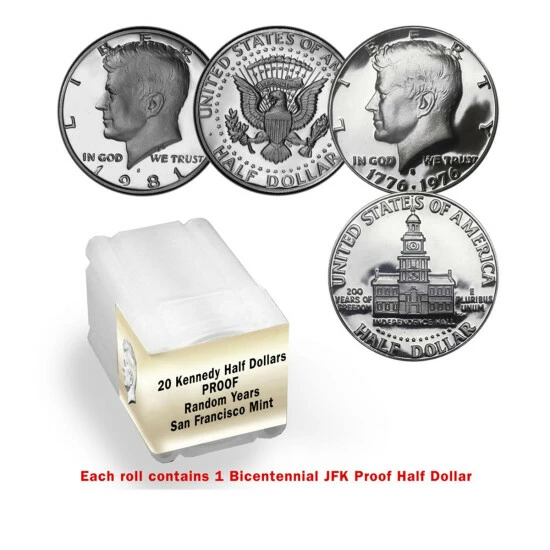 Promo 🥰 Coin Collector S-Mint Proof Random Year John F Kennedy (JFK) Half Dollar 20-Coin Roll 🛒