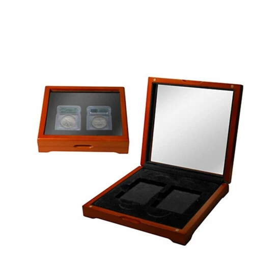 Wooden Display Box with Window for 2 Slabbed Coins